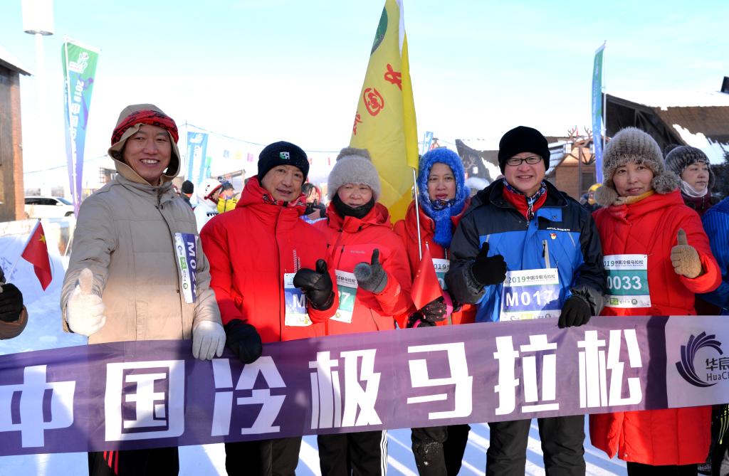 资料图:2019年12月25日,参赛选手在冷极马拉松开跑前合影留念。新华社记者 徐钦 摄