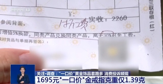 消费者 黄女士:现在的市场价格,实体店是600到700块钱一克,那1.39克我们的付款价格是1695块,相当于一克1219元了,跟现在市场价格完全不符。