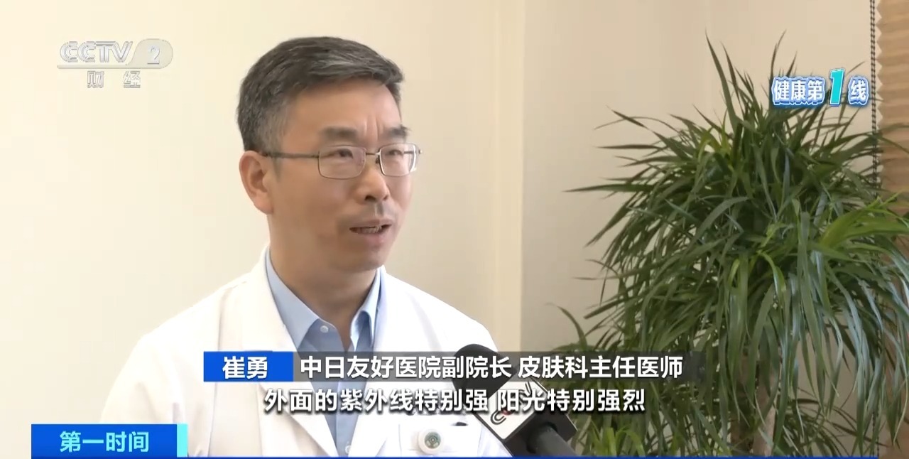 中日友好医院副院长 皮肤科主任医师 崔勇:10:00至14:00这个阶段,外面的紫外线特别强,阳光特别强烈,这时候尽量不要选择在户外活动,如果户外活动,就要涂上防晒霜。