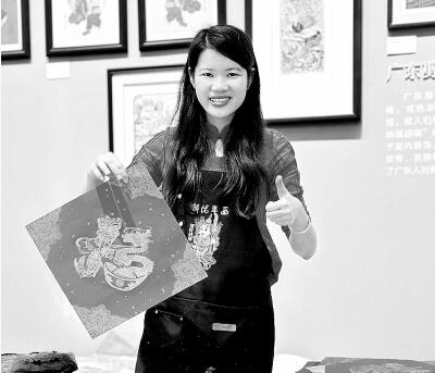 佛山木版年画非遗传承人刘钟萍在制作年画。