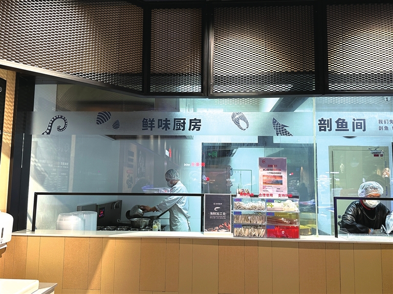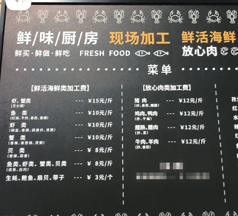 据了解,该超市可提供海鲜和肉类的代加工服务,但不包括蔬菜。