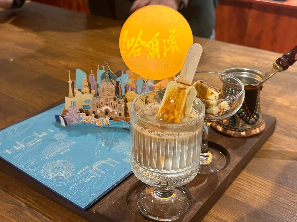 牛奶、咖啡液、马迭尔冰棍、再加入伏特加调味,旁边摆好哈尔滨立体贺卡,一份色味俱佳的“马迭尔之冬”引得食客惊叹。“好的咖啡不只是饮品,更是艺术品,利用哈尔滨的特色美食,我们调配出冻梨、蓝莓、格瓦斯等多种口味的特色咖啡。”后窗咖啡创始人朱敏从事咖啡行业十多年,将咖啡和哈尔滨地域文化有机结合,打造出哈尔滨新的美食名片,让更多人在品味咖啡时了解冰城的历史。