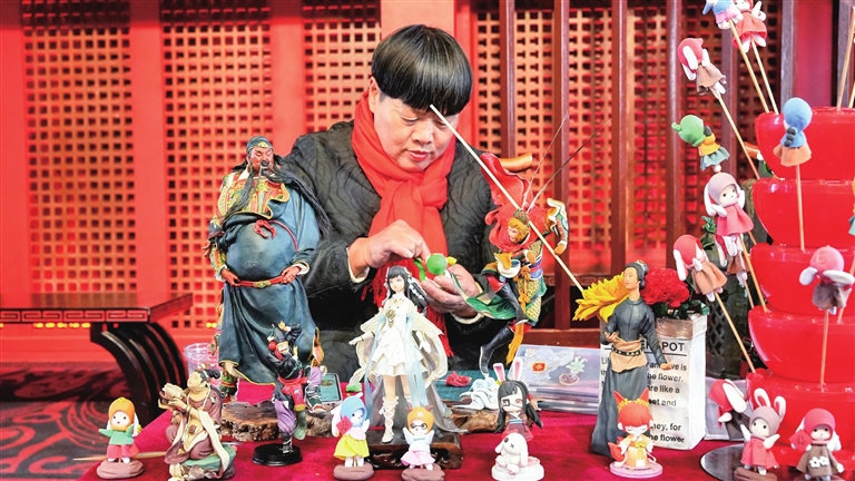 “把红纸反复对折,从折痕处裁剪”“面块在手中轻轻一按,就能捏成薄薄的花瓣……”灯谜会旁,来自永城市非遗保护和智慧化中心的非遗传承人,向现场游客热情介绍剪纸、面塑、糖画、虎头鞋的历史由来和制作技艺。