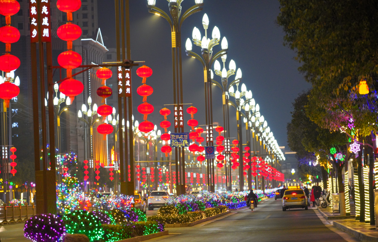 成县街头灯火璀璨(陈争强 摄)