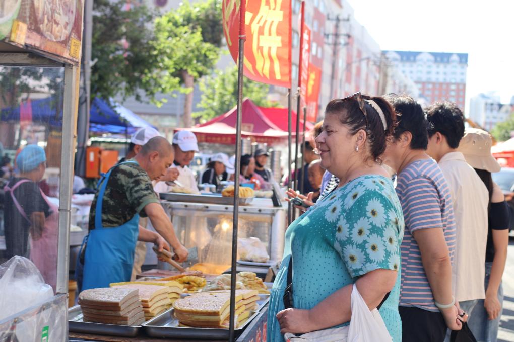 这是俄罗斯游客黑河早市选购早餐(7月8日摄)。新华社记者姜思妮摄