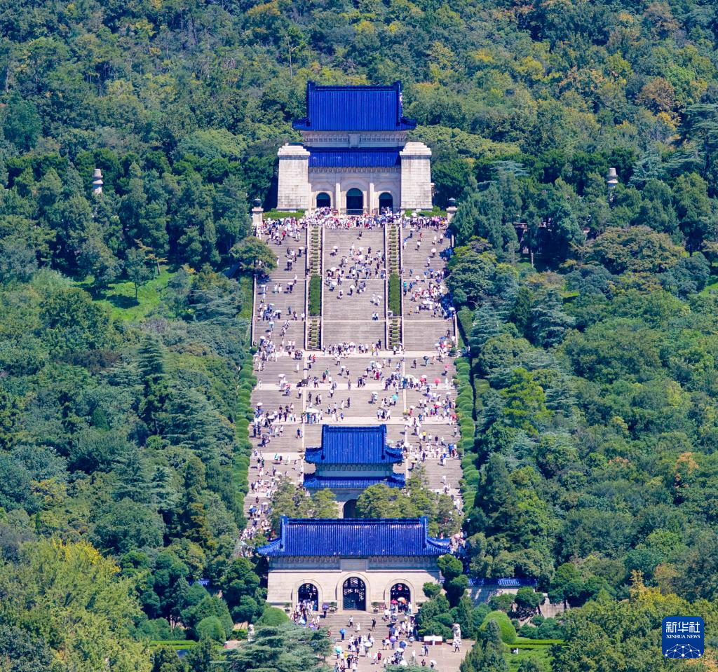 8月23日,游客在江苏省南京市中山陵景区参观游览(无人机照片)。