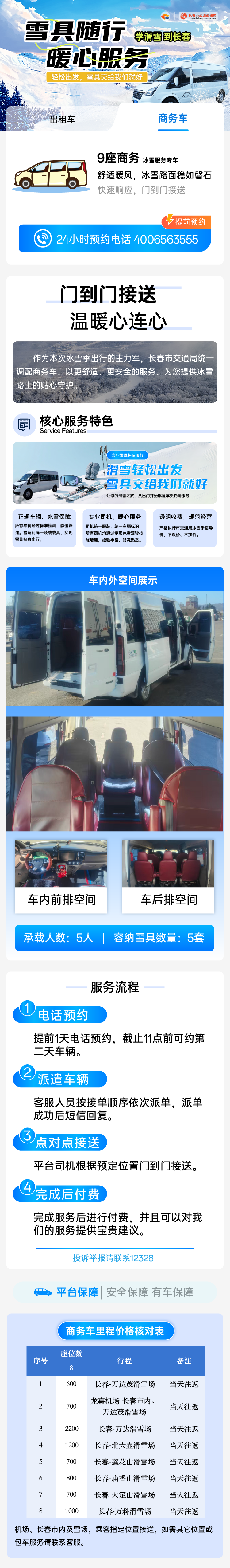 该服务覆盖长春主要冰雪旅游场景,无论是往返净月潭、莲花山等各大雪场,还是从机场、高铁站直达住宿酒店,雪具随行专属车辆均可提供“门到门”运输服务,为滑雪爱好者提供安全、便捷、舒适的雪具随行旅游体验。