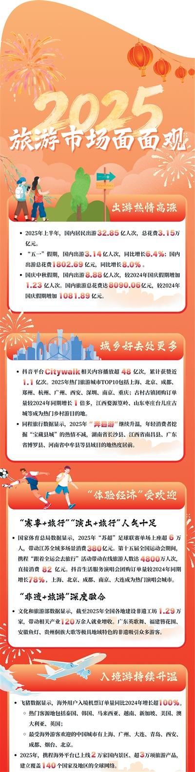 消费需求愈发多样且更加成熟,主题化、定制化、个性化的产品需求持续旺盛。近年来,冰雪游、赛事游、演唱会游、非遗游、县城游、乡村游等百花齐放,“苏超”、文创冰箱贴等新亮点不断涌现。游客在追求愉悦体验的同时,也更加关注文旅对当地环境、社区文化和文化遗产的影响,体现低碳环保、支持社区发展、具有更足“文化味”的旅游产品和目的地将赢得更多青睐。市场热点的生成与发展,将从依靠社交媒体的一过性流量热度,转向依靠扎实的产品内容、独特的文化价值和良好的游客口碑。