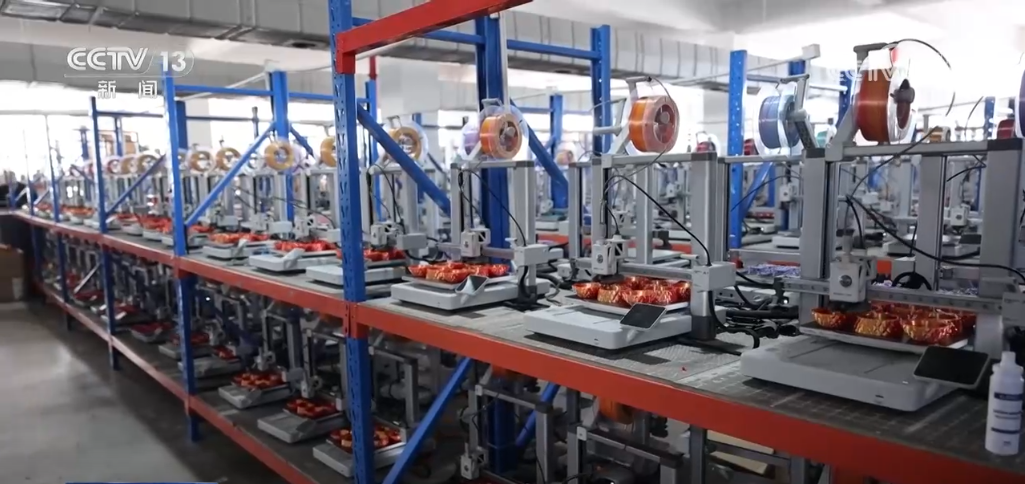 工厂负责人告诉记者,他的产品几乎一直在海外电商平台排名第一,秘诀之一就是打印的原材料。为了研发这个三色的材料,团队花了近四个月的时间。但也让产品获得了独特优势。在打印车间的楼上就是占地面积5200平米的耗材车间,近50台机器同时开动,全力生产。