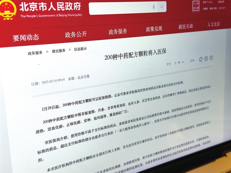 2月10日,北京市人民政府官网发布通知,2月28日起,200种中药配方颗粒可以医保报销,其中既有板蓝根、丹参、甘草等常用药,也有人参、灵芝等名贵药材,还有炒酸枣仁等炮制品。