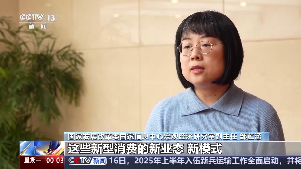 国家发展改革委国家信息中心宏观经济研究室副主任 邹蕴涵:这些新型消费的新业态、新模式,能够更好满足大家消费升级的需要,激发消费热情,不仅能为当下的消费市场提供新的动力,也为后续消费市场的持续壮大提供有力支撑。