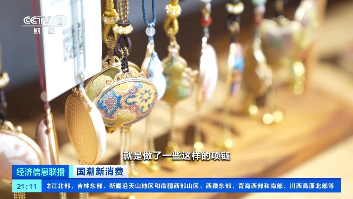 受到消费者的喜爱,商家也就有了更大的动力纷纷推出新品。在苏州的观前街,一家店铺的橱窗里展示出了刚刚上架的宋锦系列。