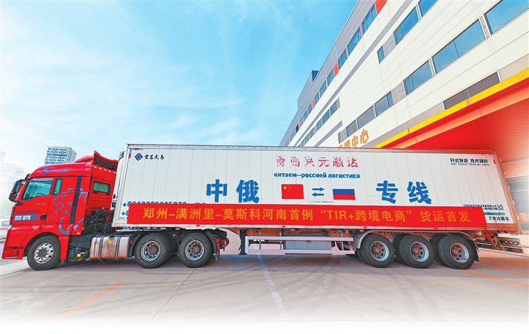 “TIR国际公路运输具备对基础设施依赖小、机动灵活、装卸方便等特点,非常适合跨境电商小包裹出口。此次‘TIR+跨境电商’国际卡班顺利首发,也是河南构建‘空、卡、铁、海’多式联运立体物流网络的重要一步。”李金雨说,下一步,中大门国际物流集团将持续依托郑州作为内陆开放高地和国际性综合交通枢纽优势,深化TIR卡班公共平台建设,拓线路、优服务,优化资源配置,降低物流成本,提高货运时效,增强供应链产业链韧性,为河南建设全国统一大市场循环枢纽、打造国内国际市场双循环支点提供坚实支撑。