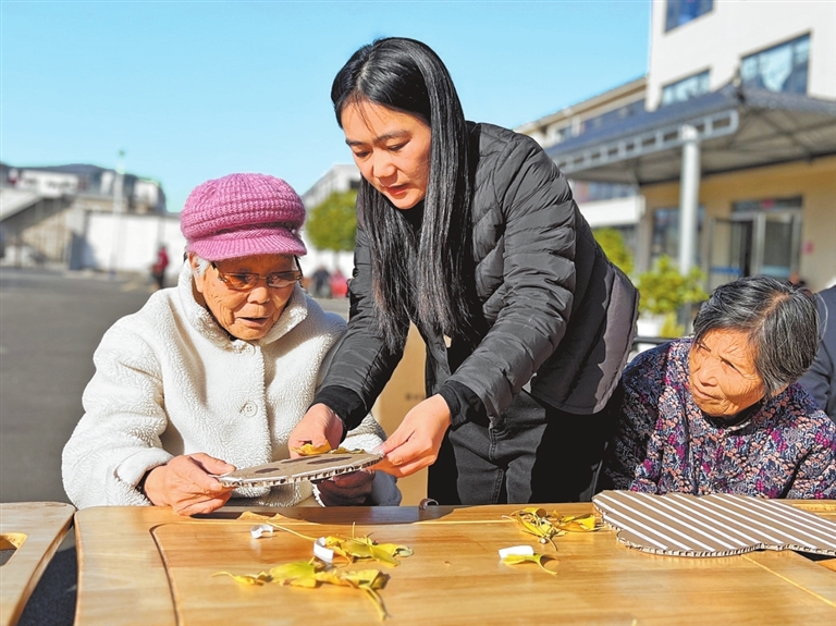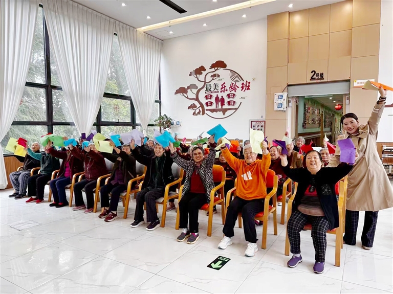 手势舞、奥尔夫打击乐……做幼教时的教学内容,被靳雅婷“搬”进了养老院,“乐动养老+幼儿园大大班”的服务模式日渐成熟。此外,她还设计了手工制作、绘画等娱乐活动,连行动不便的老人也能参与“传球接龙”“坐地钓鱼”等游戏。“以前觉得在养老院就是‘熬日子’,现在我天天盼着上课,还结识了一群老姐妹,不觉得孤单。”一位76岁的老人开心地说。