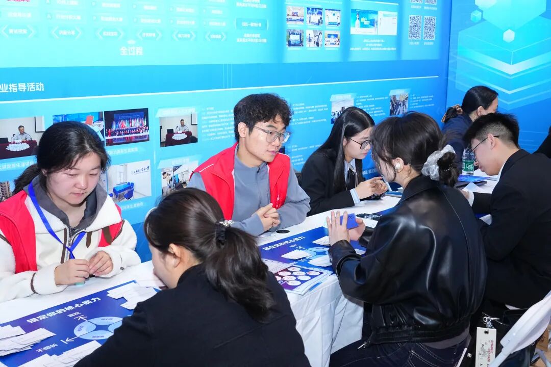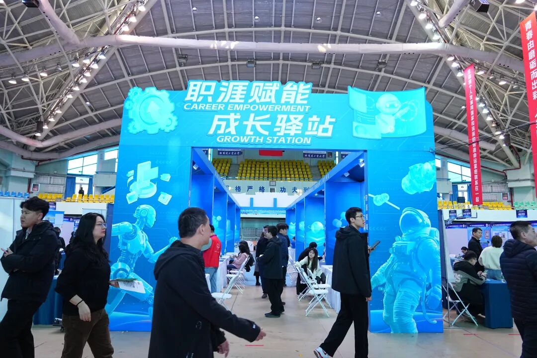 本次人才博览会创新打造就业育人新场域——职涯赋能“成长驿站”。学校把同学们在职业规划、能力提升、信息查找中遇到的真实问题,分成了八个就业育人主题区域,每个区域解决一类痛点,为学生提供一个求职路上可以随时“停靠”、随时“补给”、随时“充能”的加油站。