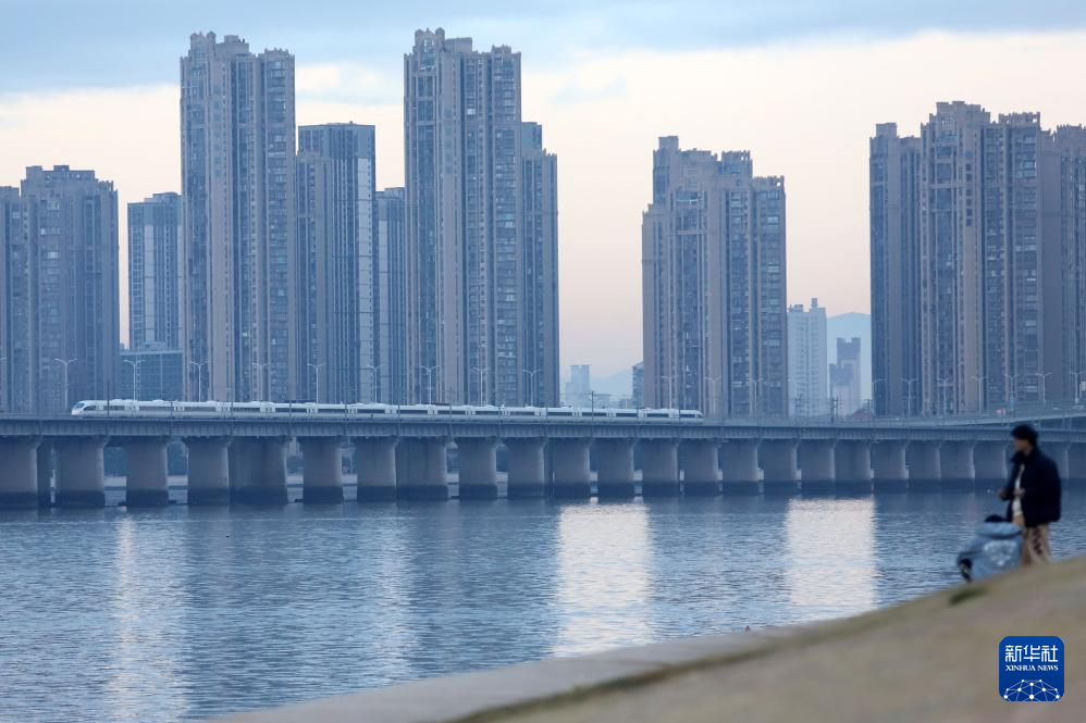 1月25日,动车组列车在福建省厦门市境内行驶。