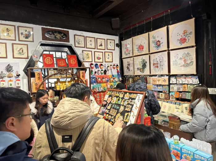 在晋祠的文创体验馆内,同样是一派人山人海的景象。游客们在参观完千年古建之后,纷纷涌入这里挑选心仪的纪念品。冰箱贴、书签、集章本……这些融合了晋祠元素的设计精巧的文创产品,成为游客们争相收入囊中的“伴手礼”。“想挑几个有特色的冰箱贴带回去送朋友,每一个都好看,选择困难了!”几位年轻姑娘在文创柜台前笑作一团,手中的购物篮里已经放满了各式“战利品”。一位来自河南的游客感叹道:“预约了好几天才约上晋祠的门票,进来之后发现不但古建筑震撼,文创也做得这么好,把‘晋祠记忆’带回家,这趟来得太值了。”这股“文创热”不仅让游客把文化记忆带回了家,也让古老的三晋文化以更轻盈的方式走进年轻人的生活。