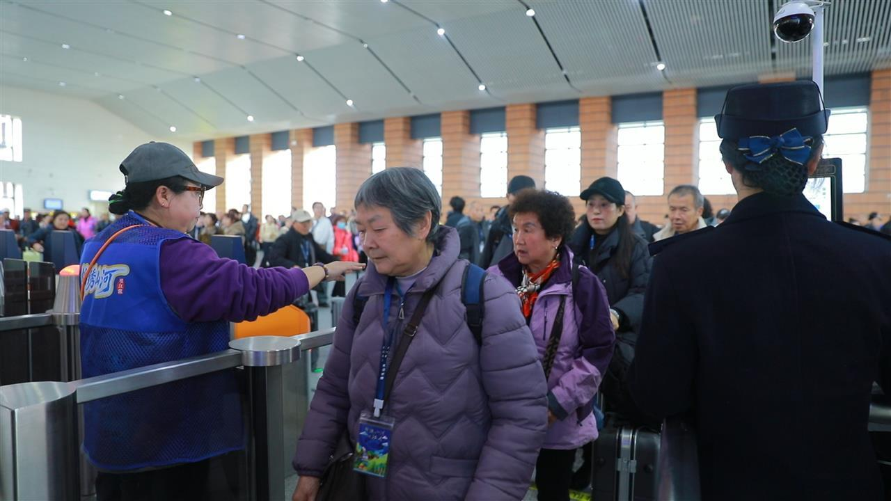 13时20分,德阳站设置进站通道与候车区,工作人员全程引导旅客有序安检进站、排队检票。老年旅客们结伴而行、笑容满面,现场温馨有序,处处洋溢着出发的喜悦。