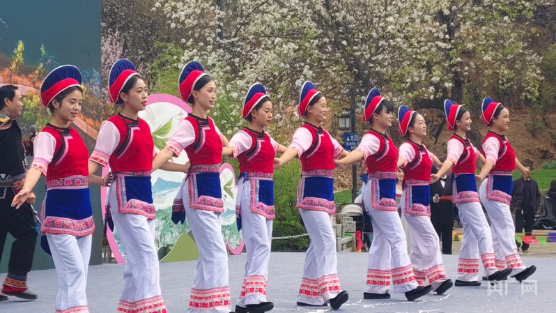 开幕式上,以“奇峰千树雪 策‘马’踏春光”为主题的文艺演出精彩上演,《奇峰梨花开》《霸王鞭 八角鼓》《金钉子》《春风十万里》等舞蹈节目轮番登场,歌曲《母亲是中华》《彝歌联唱》以及魔术表演等节目,展现了浓郁的民族文化和民间艺术魅力。