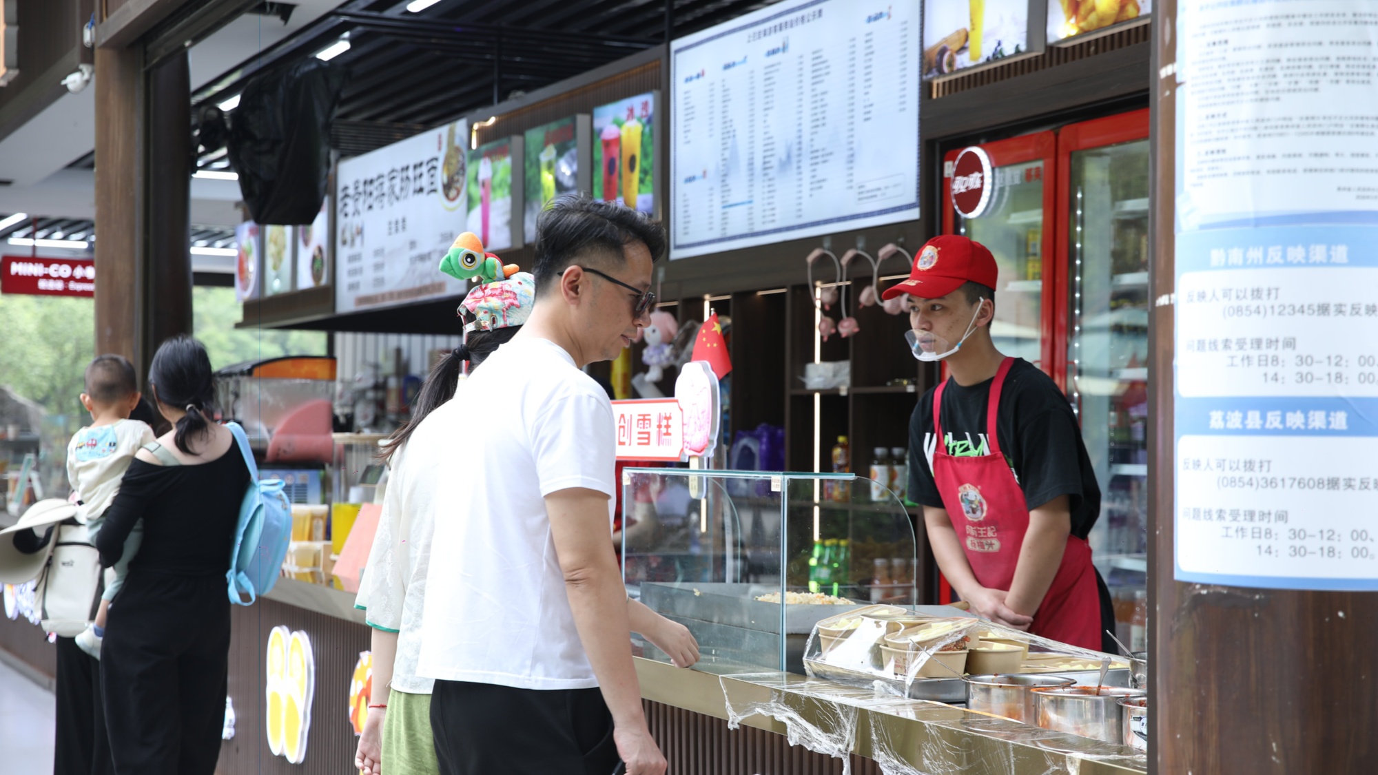 游客在景区文创、商业街区休闲消费(荔波县融媒体中心供图)