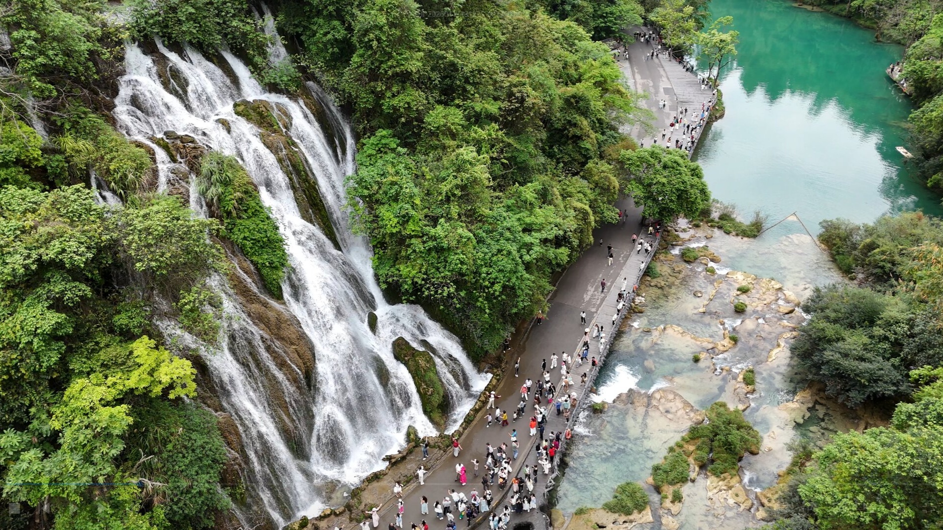 四月的荔波小七孔景区绿意盎然、碧水穿峰,飞瀑流泉间尽显春日生机。游客泛舟湖上、穿行水上森林,沉浸式感受喀斯特风光。景区结合“三月三”等民族节日,推出非遗文化展演与互动体验,进一步提升游客游玩体验。