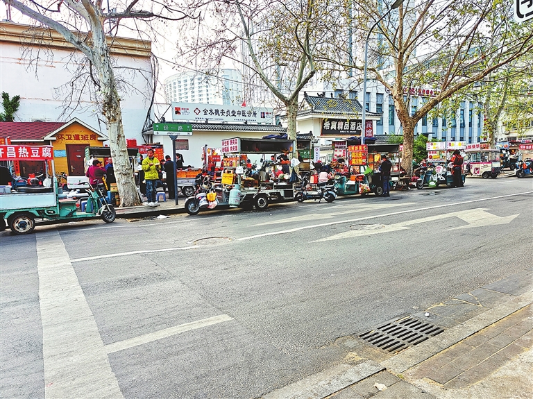 该工作人员介绍,按照“主干道严禁、次干道严控、背街小巷规范”的分级管控原则,目前原本在碧云路周边经营的商贩,已被统一引导至“背街小巷”华中路与冯庄路,由辖区街道办负责日常管理。“现在我们执法中队的工作人员每天也都会到现场巡逻。”